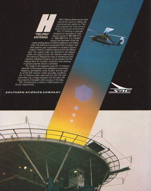 Southern Avionicsâ Company's H Pad Antenna SystemLongwire antenna designed to be installed around perimeter of helideck. Includes antenna wire,insulators, mounting poles and hardware. P/N SLF10022.